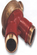Toma para bombero, fabricada en bronce cromado con dos entrada para alimentación de agua a la red contra incendios. Con tapónes y cadena.